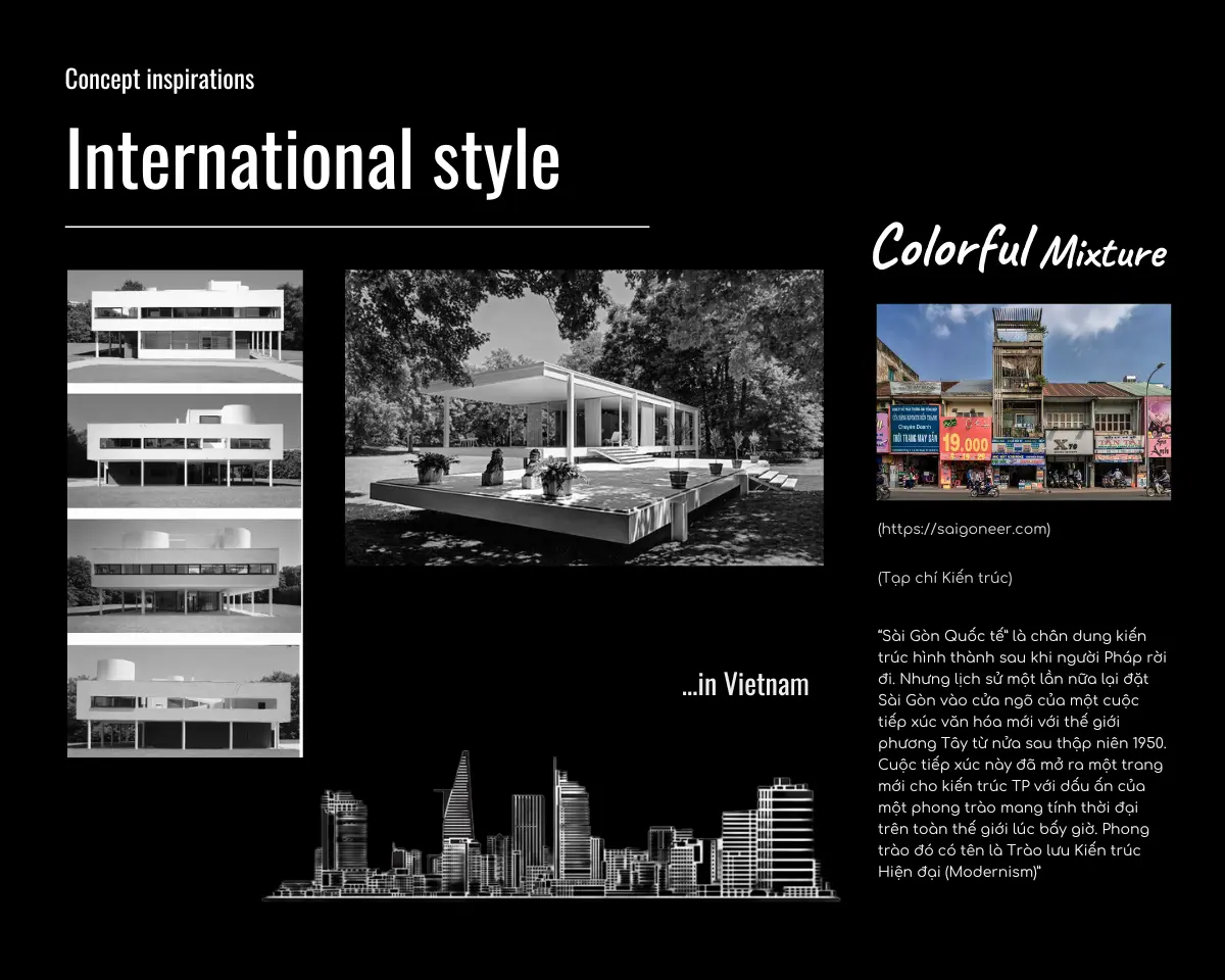 Khởi đầu bằng việc giữ lại hệ khung cửa vòm và kết cấu mở, MODESK chọn cách "renovation" thay vì phá bỏ hoàn toàn. Tuy nhiên, thay vì đi theo lối décor bản địa phổ biến, dự án hướng đến cảm hứng quốc tế – “International Style” – với sự pha trộn giữa tinh thần hiện đại phương Tây và ký ức nội thất Việt Nam những năm 90s.
