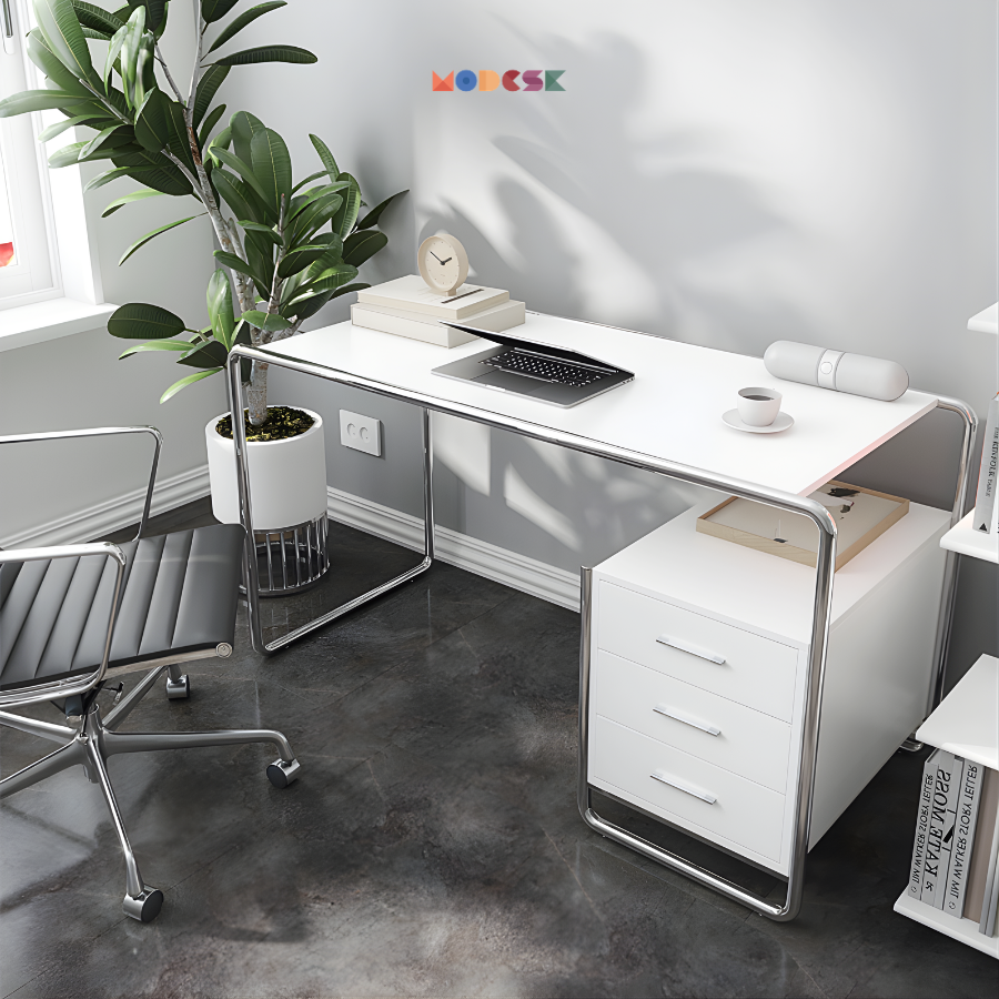 MODESK SS Thonet Table là mẫu bàn làm việc mang phong cách tối giản hiện đại, kết hợp giữa khung inox 304 uốn cong liền mạch và mặt bàn phẳng tinh gọn. Thiết kế lấy cảm hứng từ tinh thần Bauhaus, tập trung vào sự đơn giản, công năng và tính thẩm mỹ bền vững theo thời gian.