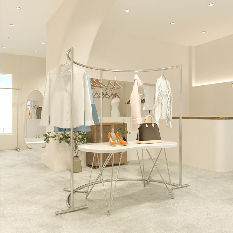 Dạng sào đứng độc lập giúp khách hàng có thể tiếp cận sản phẩm từ nhiều phía. Đây là giải pháp tối ưu cho showroom, shop thời trang hoặc không gian trưng bày cần sự linh hoạt và chuyên nghiệp.