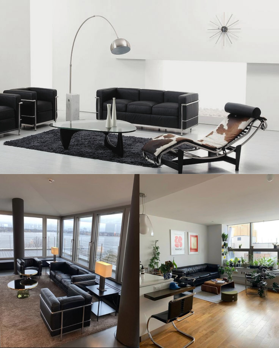 Sự kết hợp giữa kim loại sáng và da đen tạo nên tổng thể vừa mạnh mẽ vừa tinh tế, giúp nâng tầm không gian sống một cách rõ rệt.